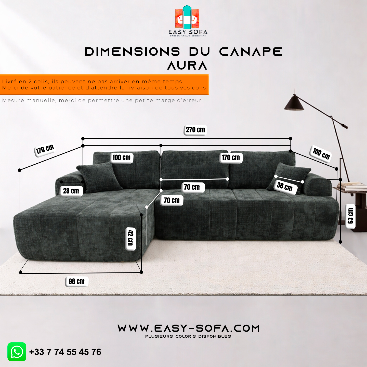 Note : AURA a été pensé pour créer une ambiance douce et apaisante, en alliant design bas, confort et simplicité d’installation.